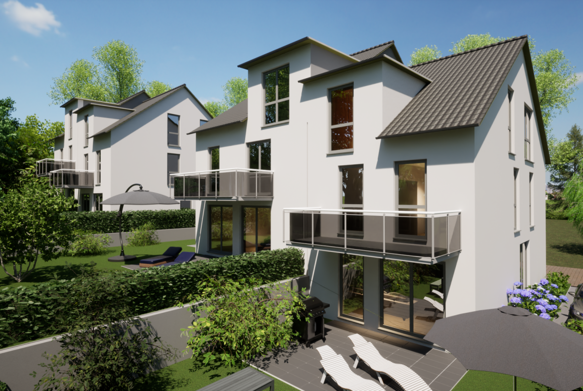 Massive und solide Mauerwerkbauweise ist Grundlage unserer Gebäude, Fundamente, Bodenplatte und Keller entstehen aus wasserdichtem Beton. Das Gebäude erfüllt die hohen Anforderungen der KFW als KFN 40 Energiesparhaus in der Energieeffizienzklasse A+. Die Fassade und das Dach werden mit nachhaltigen Materialien wie Holzfaserplatten, Zellulose und Steinwolle gedämmt. Die hochwertige Materialauswahl wird mit einer PV-Anlage inklusive Speicher und einer gehobenen Innenausstattung abgerundet.